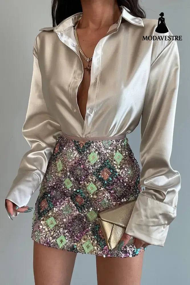 Single-breasted Long Sleeve Lapel Shirt Sexy Women Clothing