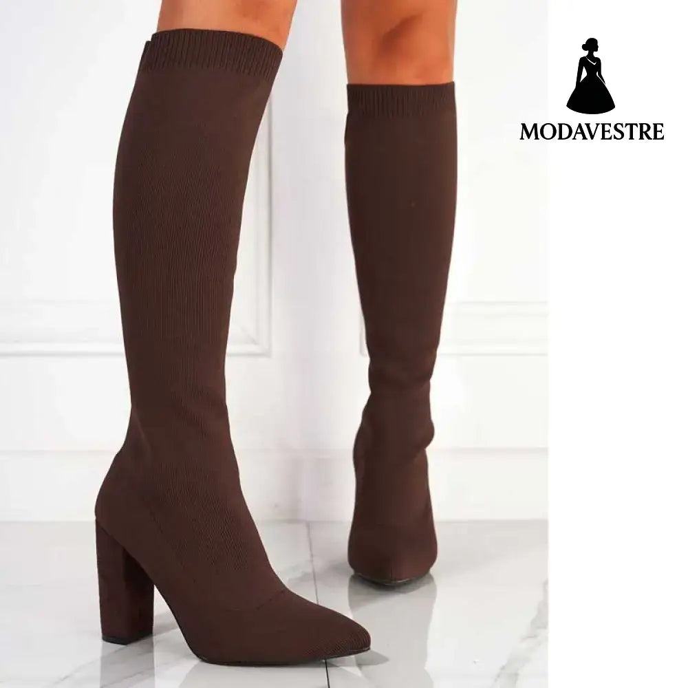 Thick High-heeled Thigh Boot Women Light Brown / 35