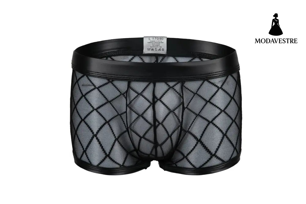 Tulle See-through Plaid Boxers For Men - MODAVESTRE