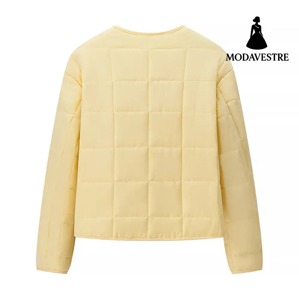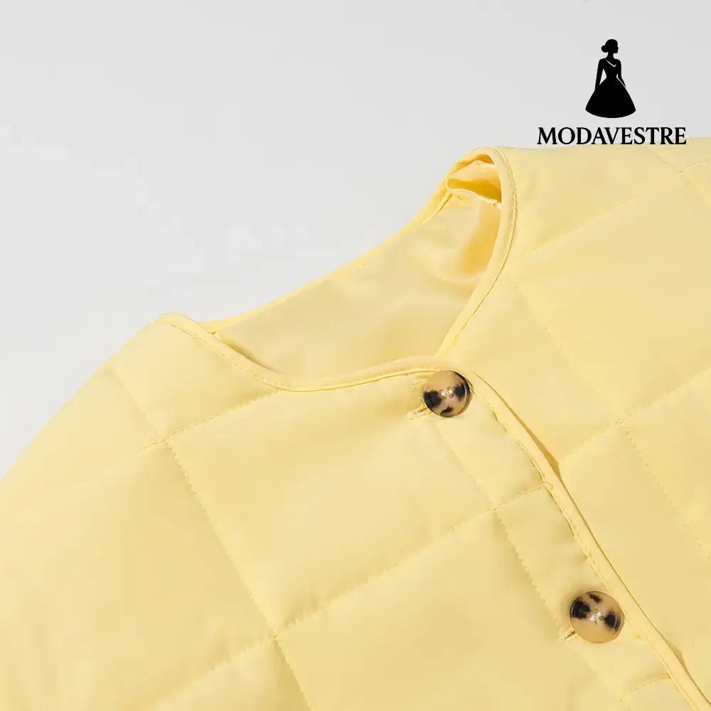 Autumn Women Clothing Yellow Quilted Cotton Plaid Cotton Clothing Cotton Coat