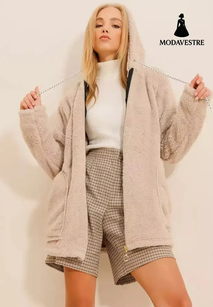 European And American Women’s Clothing Plush Coat Beige / 2XL Coat