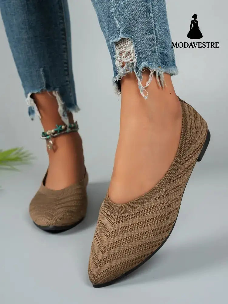 Pointed Toe Low-cut Women’s Breathable Flat Shoes Brown / 35