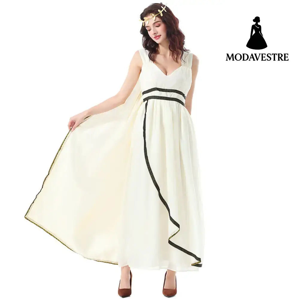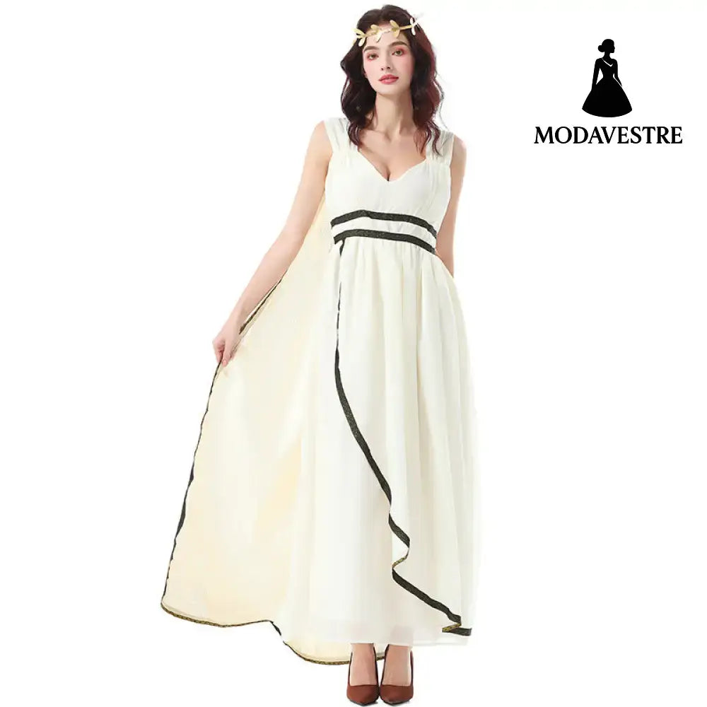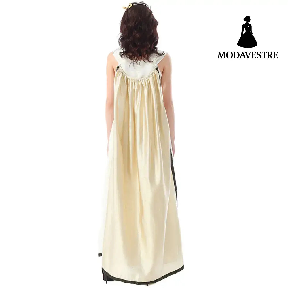 Halloween Costume Medieval Ancient Greek Roman Mythology Character Veil Dress Costume Off-white / S