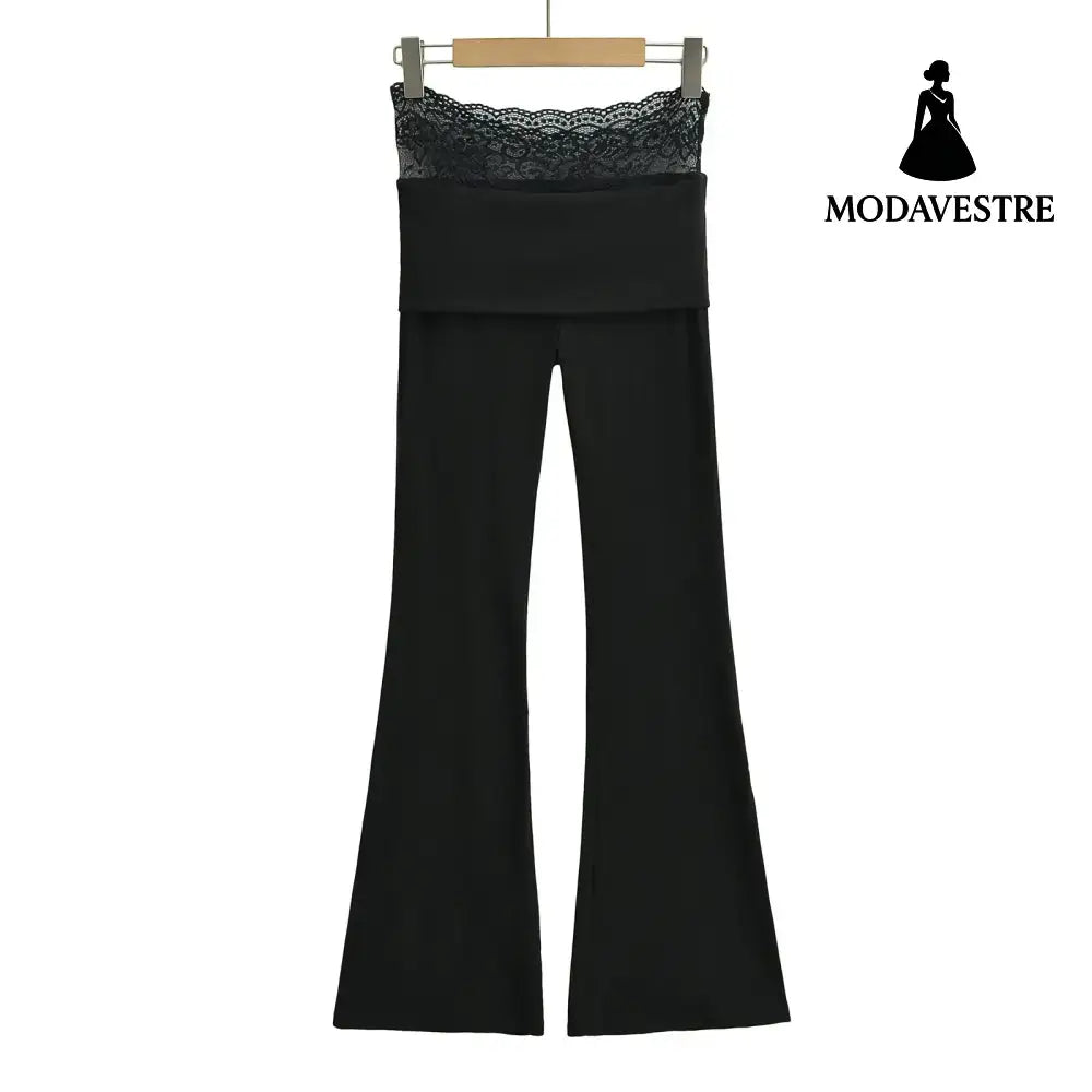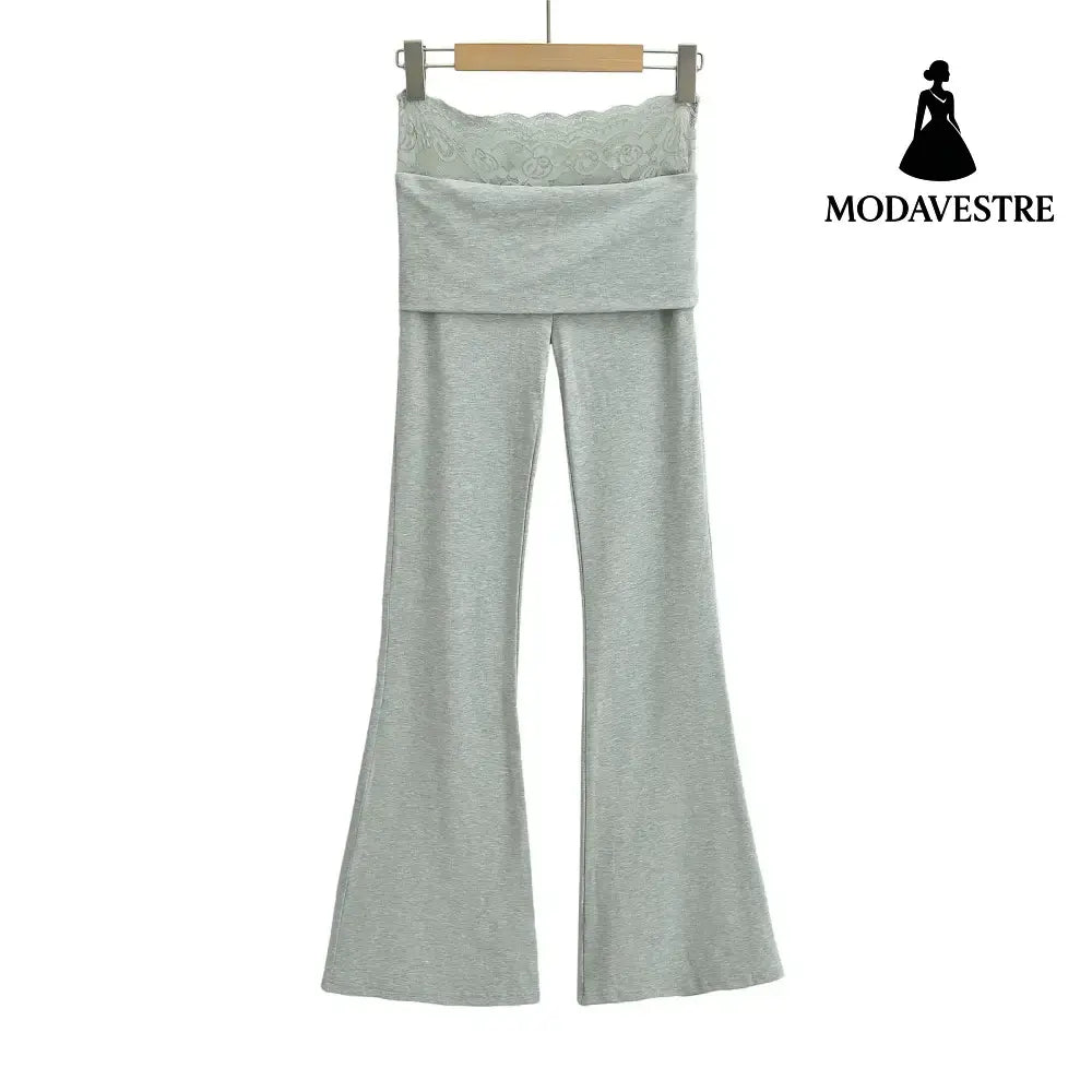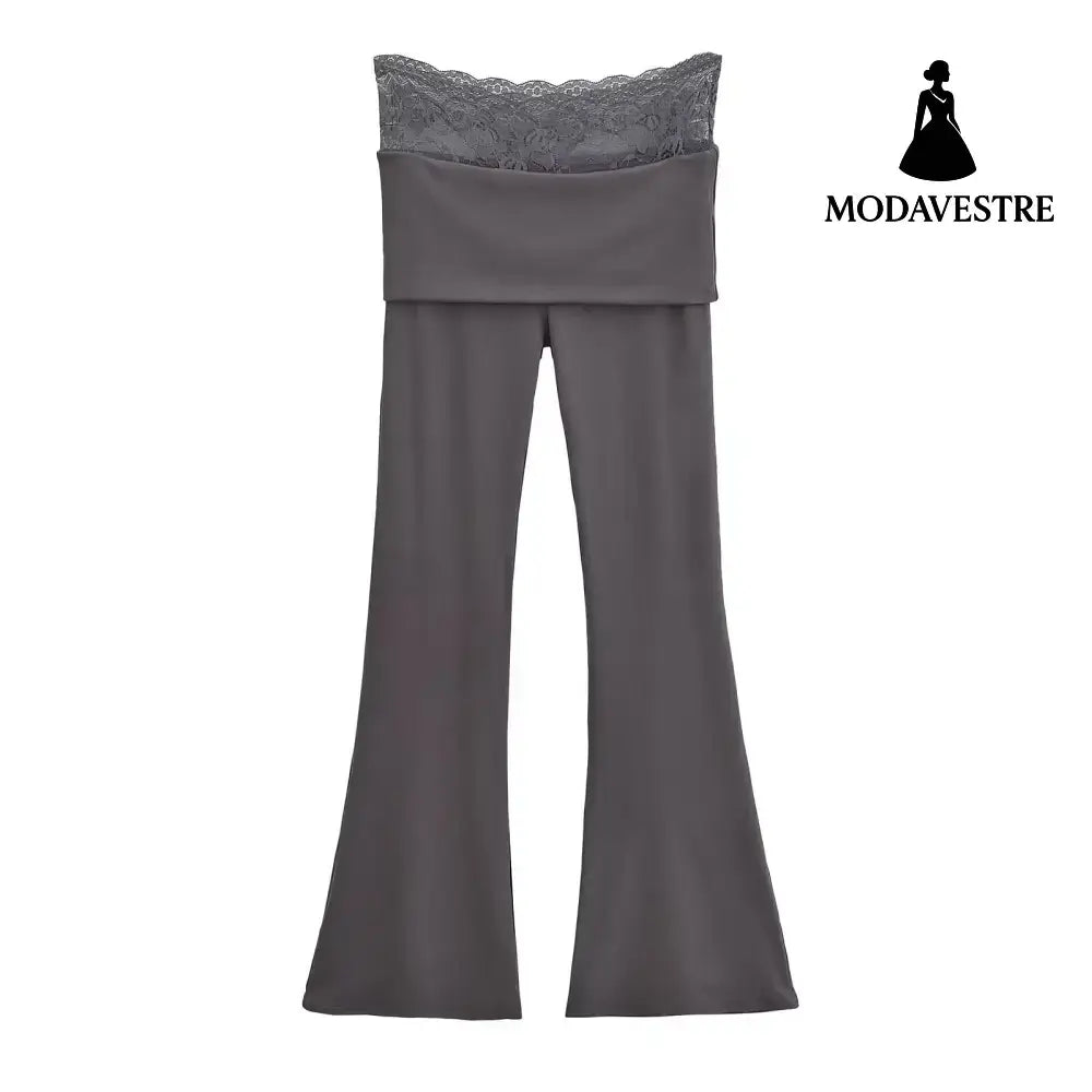 High waisted lace patchwork micro flared pants Dark Gray / S