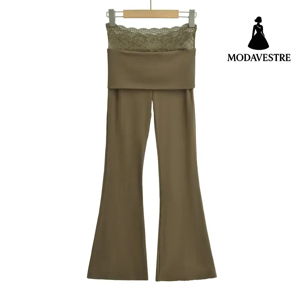 High waisted lace patchwork micro flared pants Mocha Brown / S