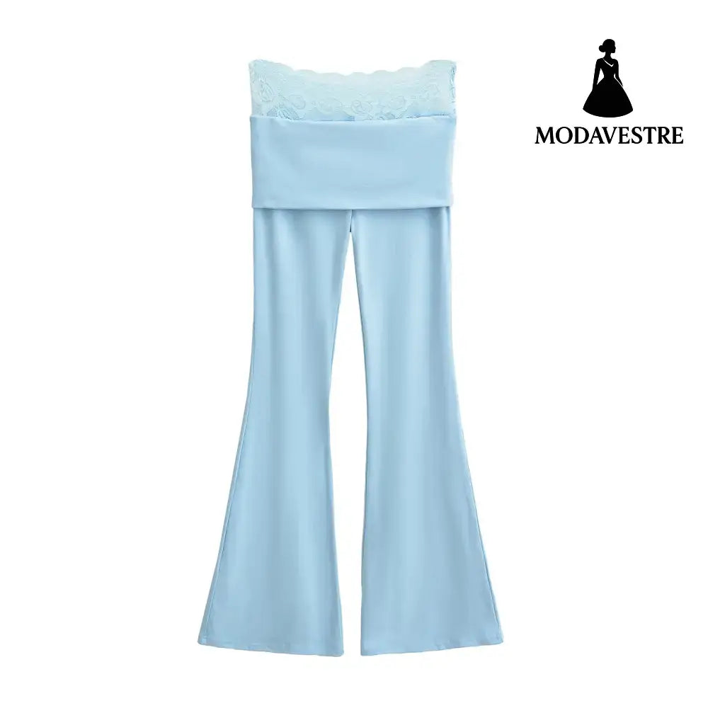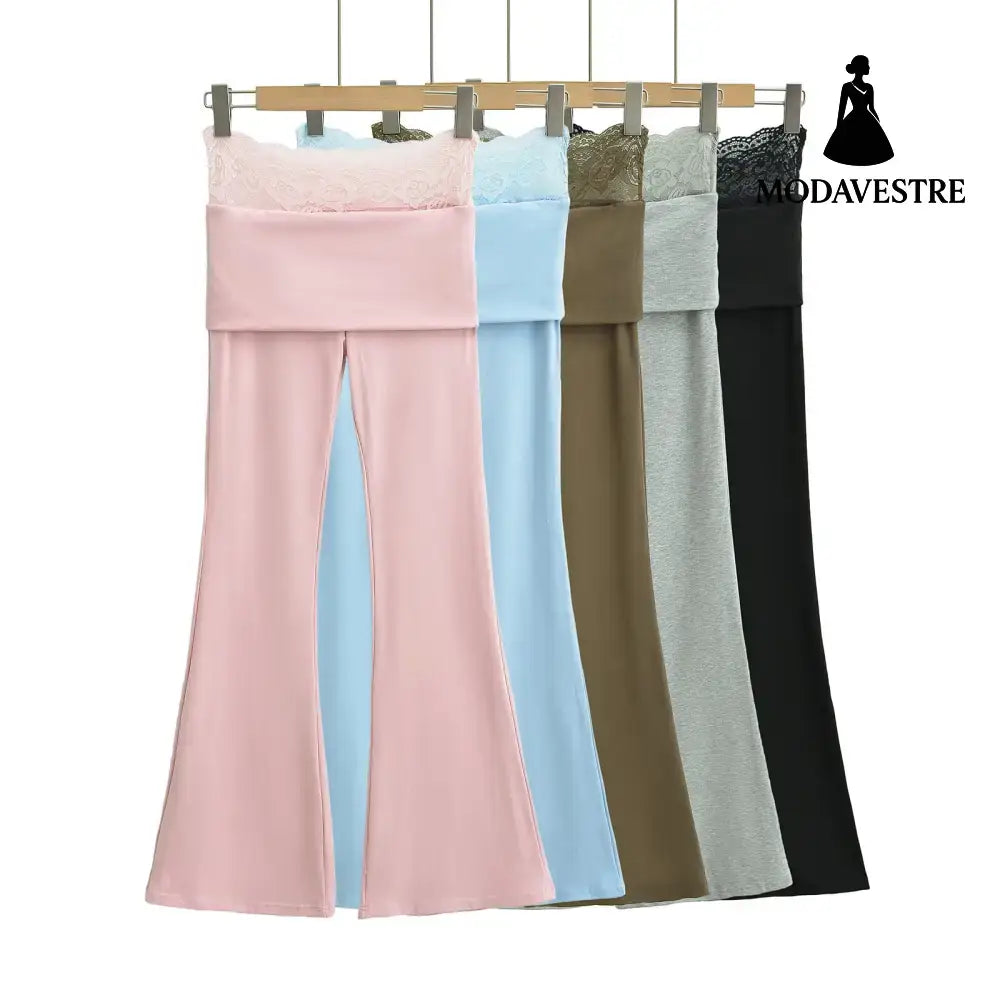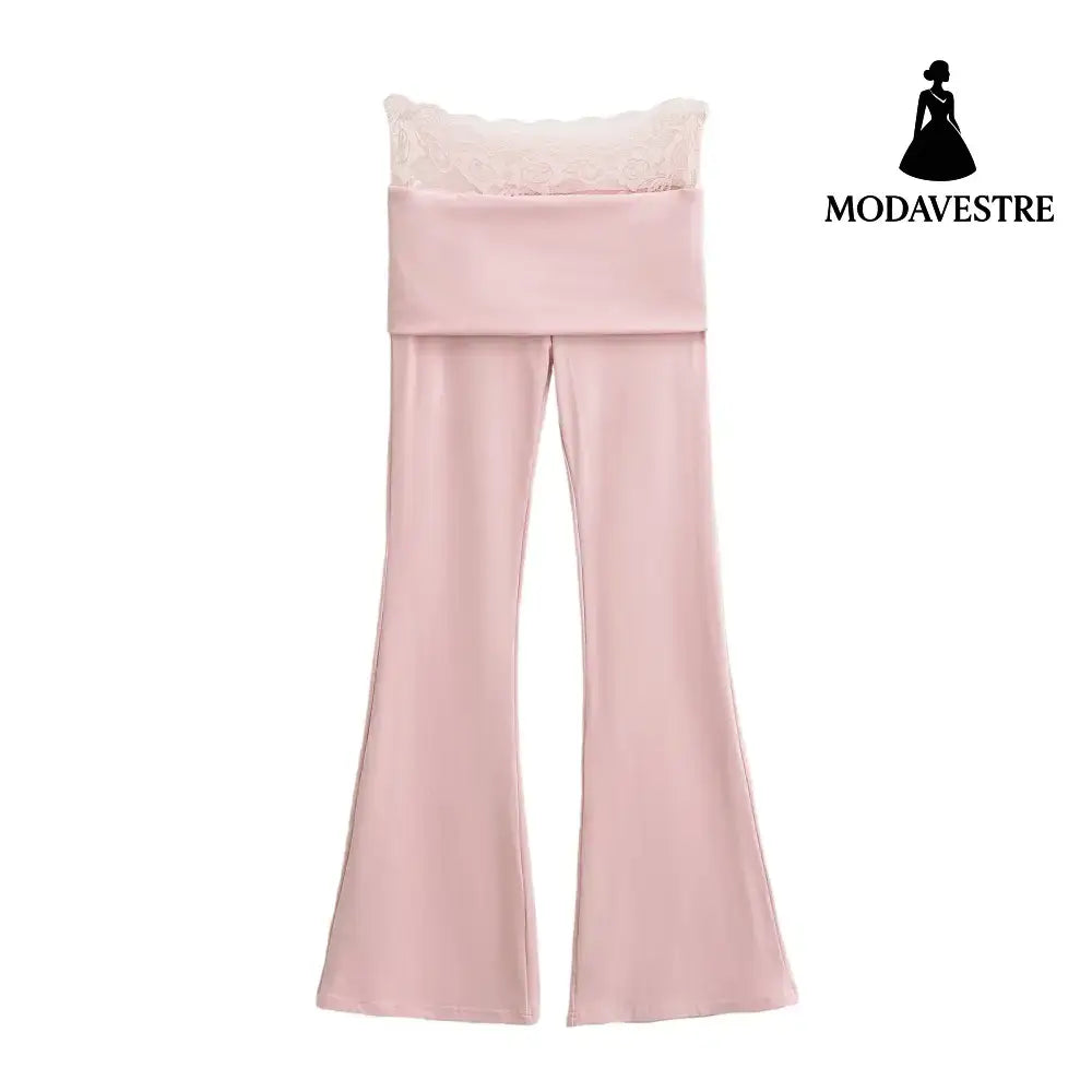 High waisted lace patchwork micro flared pants Peach Pink / S