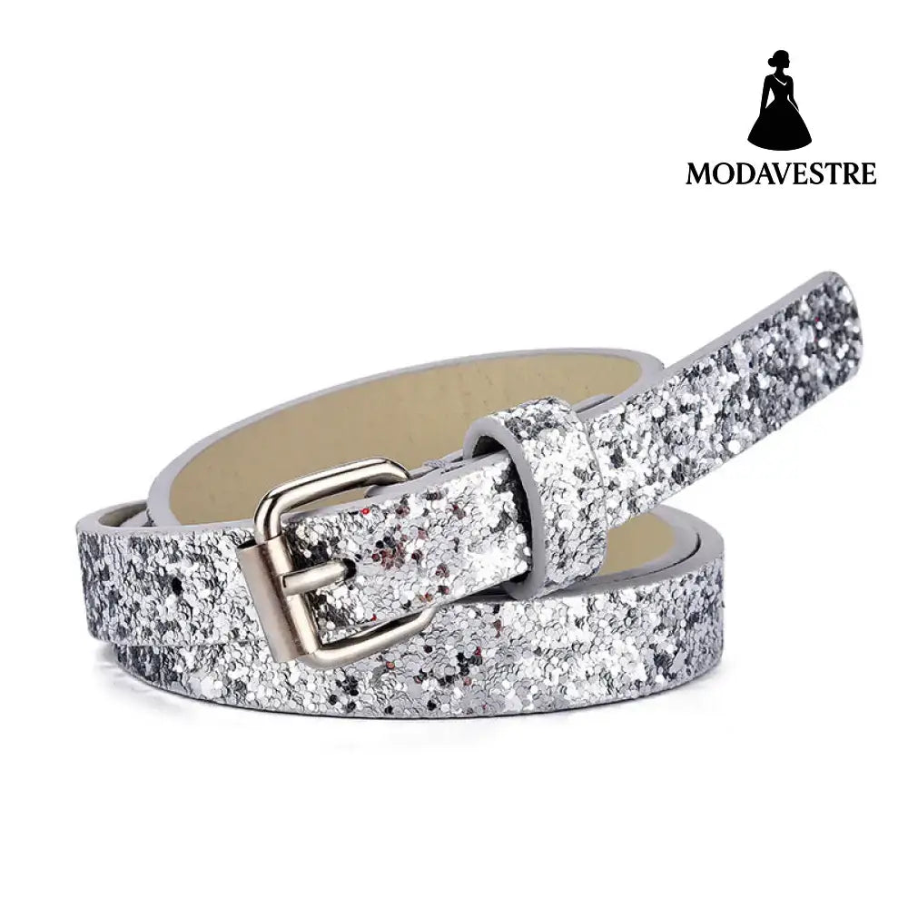 Ladies Kids Belts Heart Glitter Jeans Cropped Glitter Silver