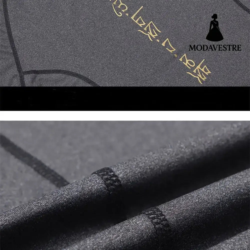 New Summer Casual Printing Tight-fitting Running Fitness Clothing For Men Dark grey Sanskrit section / 2XL