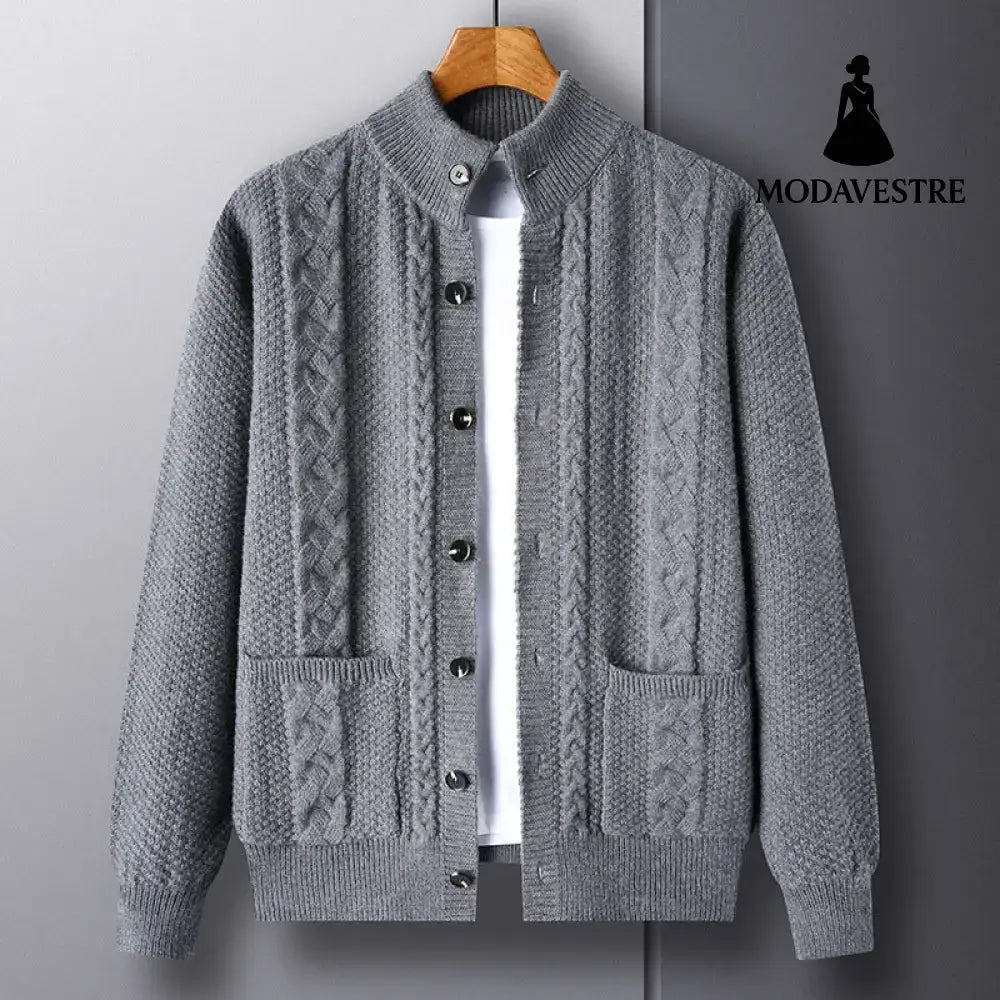 New Single-breasted Sweater With Pockets Fashion Jacquard Loose-fitting Cardigan Men Clothing M8513 Medium Gray / L