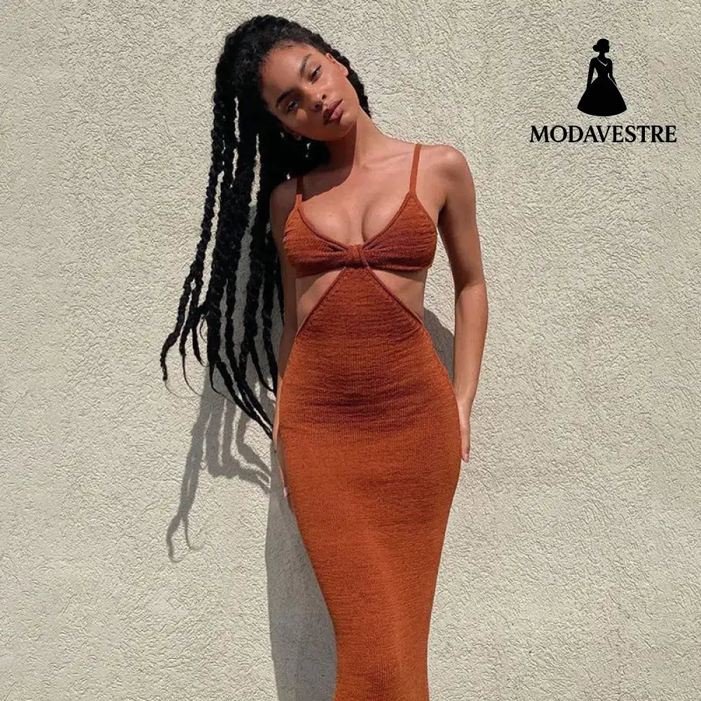 Dresses Party Club Elegant Hollow Out Dress Sundress Brown / L