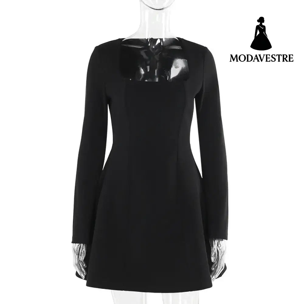 Women’s Clothing Slim Fit Square Collar Long Sleeve Dress Women Black / L
