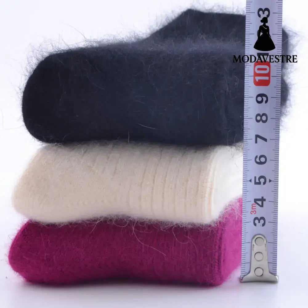 Double needle rabbit wool socks women