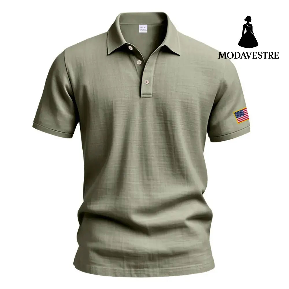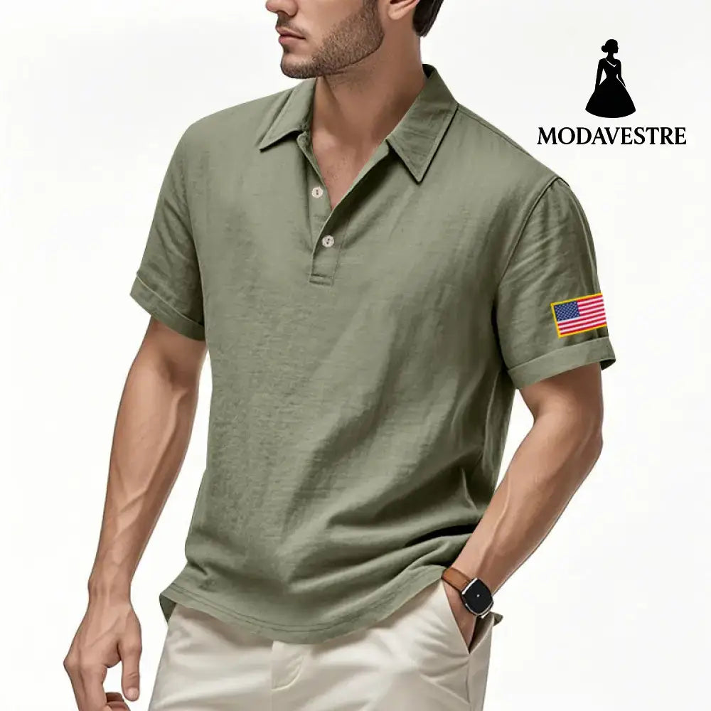 American Summer Linen Short Sleeve Men Clothing Army Green / L