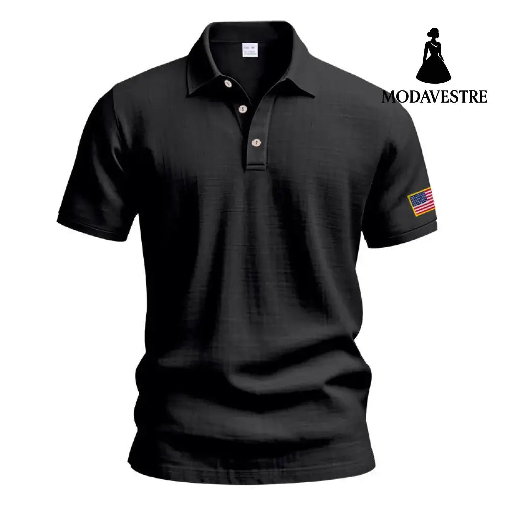 American Summer Linen Short Sleeve Men Clothing Black / L