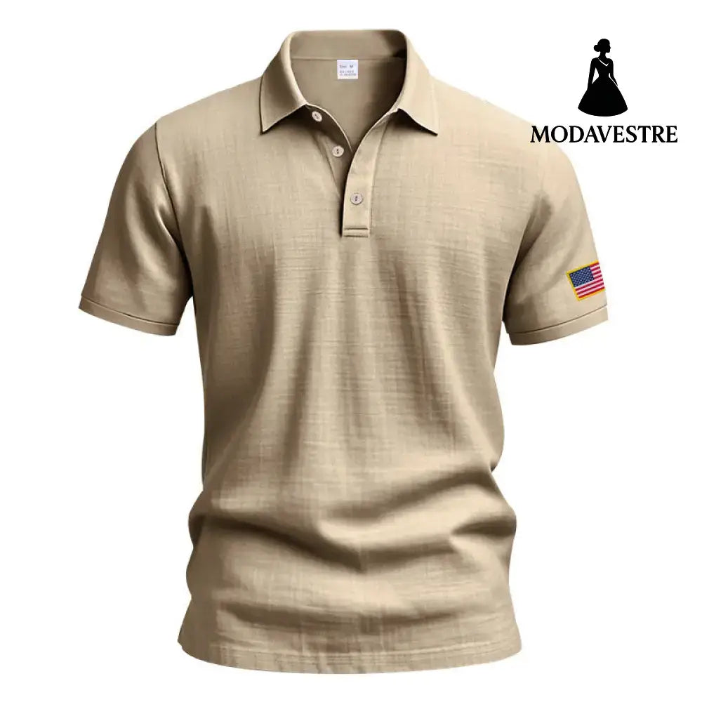 American Summer Linen Short Sleeve Men Clothing Light Khaki / L
