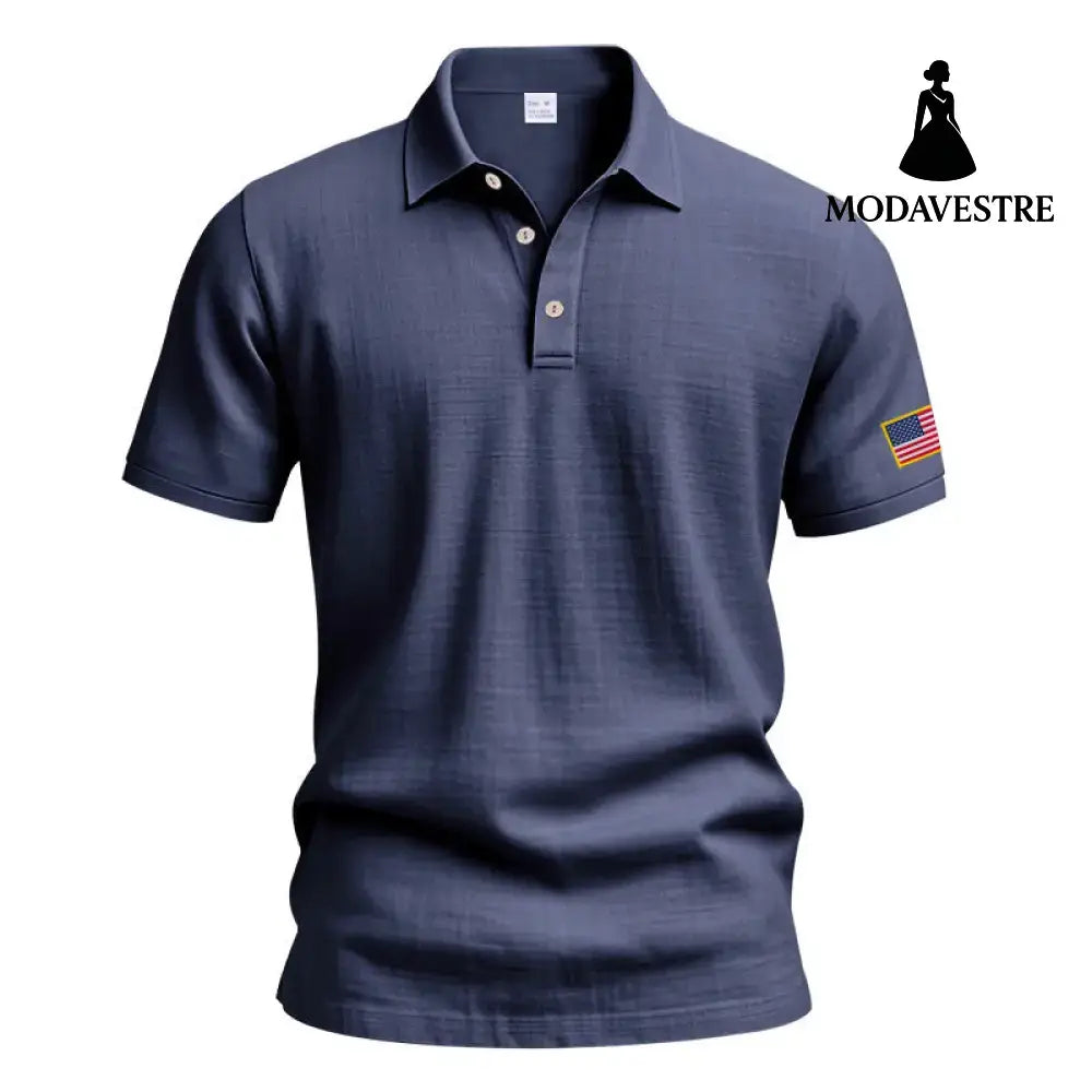 American Summer Linen Short Sleeve Men Clothing Navy Blue / L