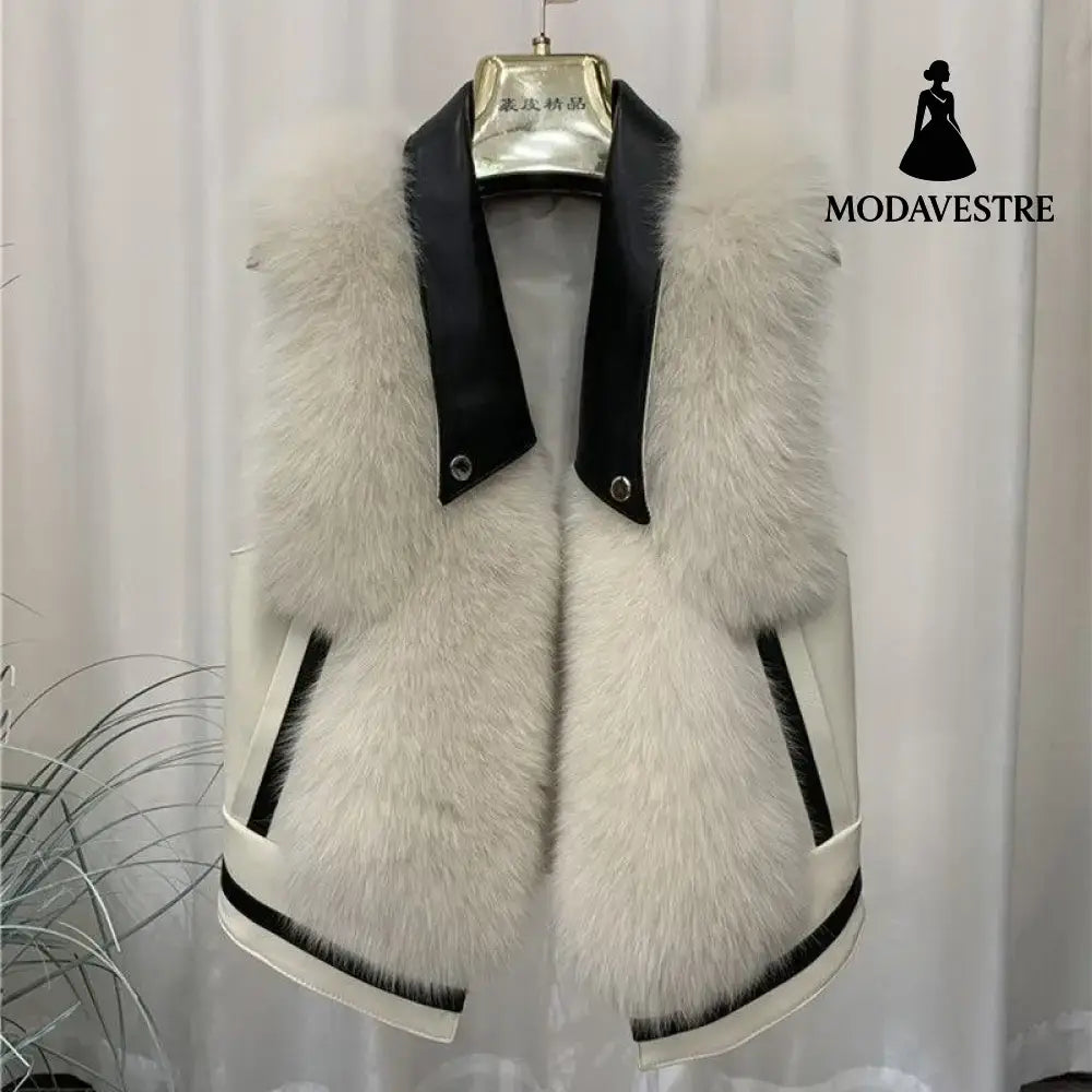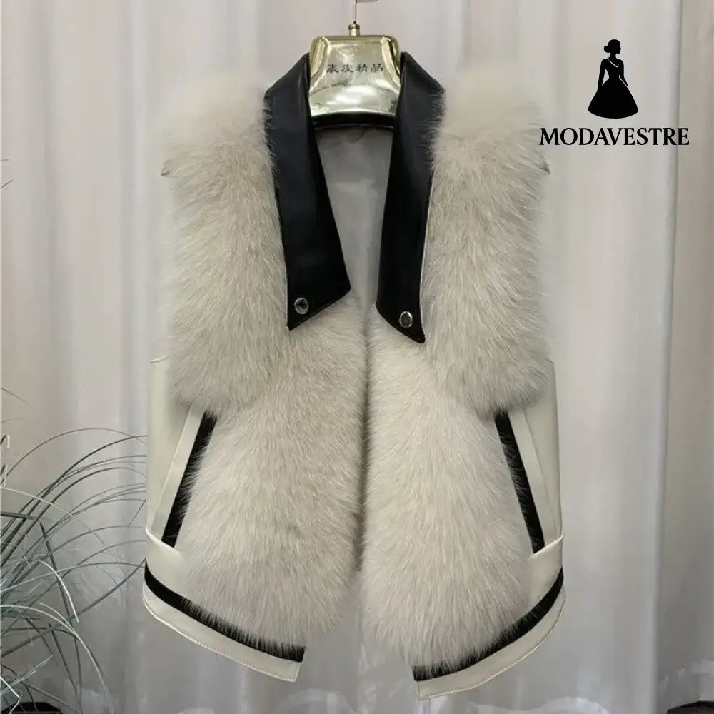 Fashion Slimming Slim Women Fur Vest Beige / L