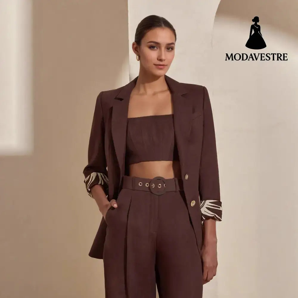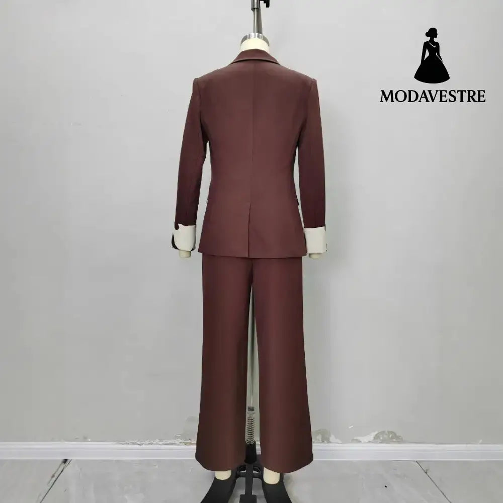 Fashionable Dark Brown Slim-fit Women’s Business Suit Two-piece Suit Brown / L Suit