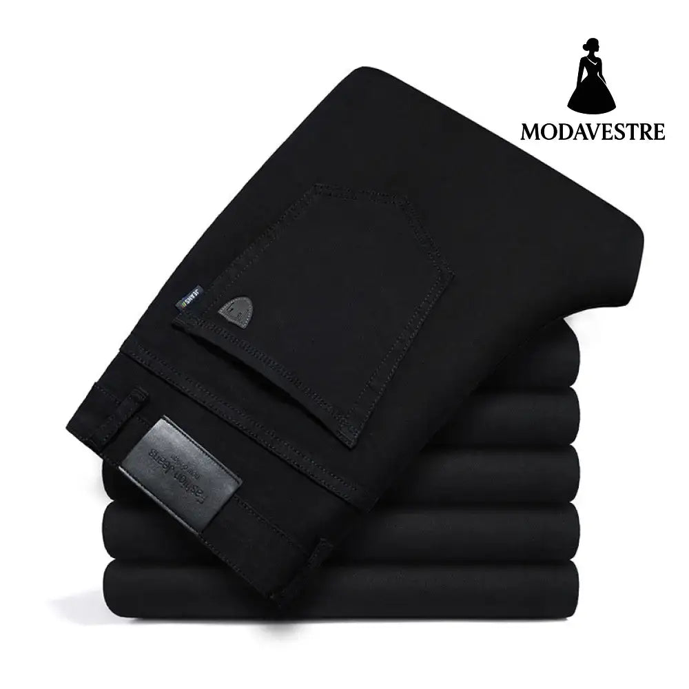 Thick and fluffy men’s autumn and winter loose straight leg jeans 6211 Black [Regular] / 29