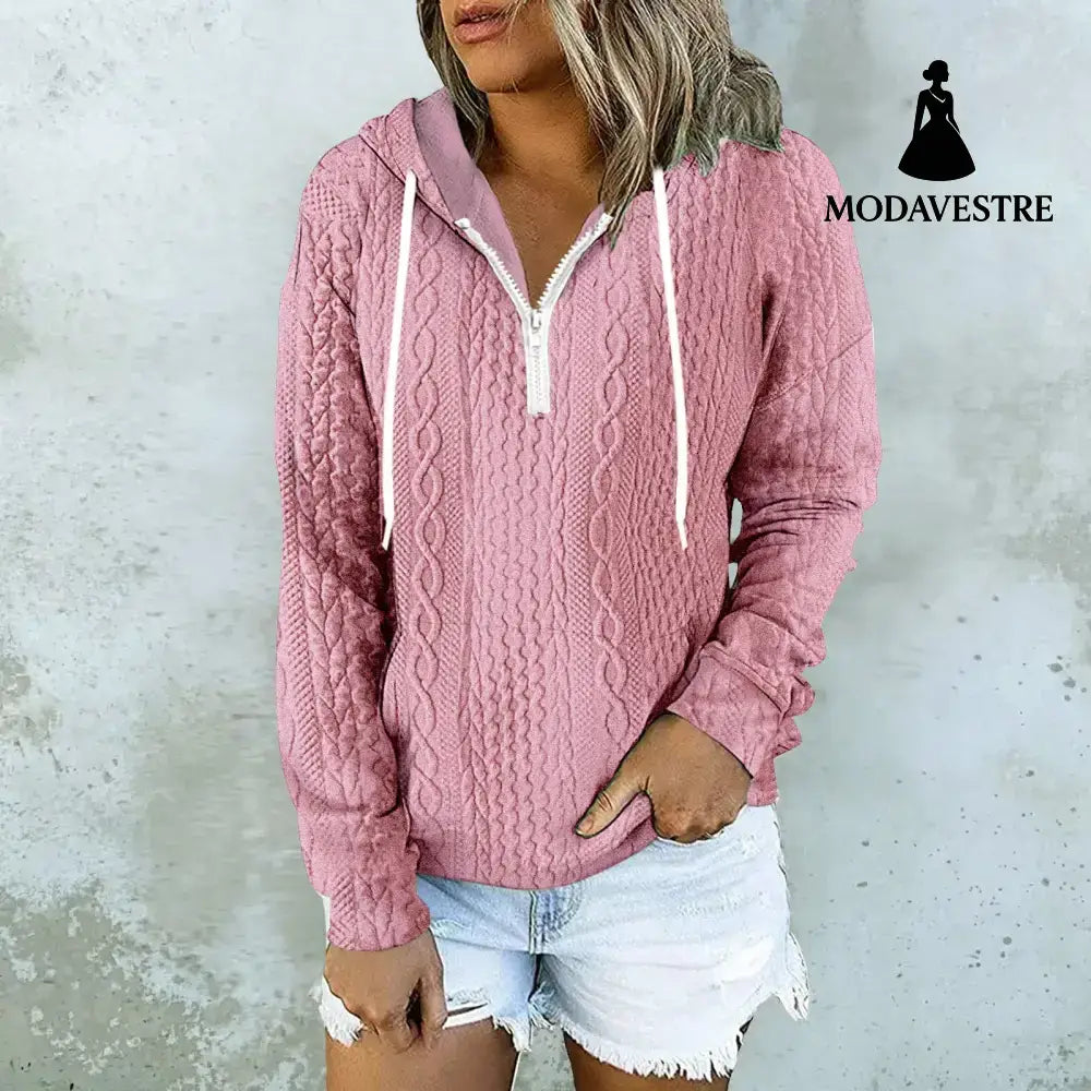Twist Texture Design Hoodie Drawstring Sweatshirt Fashion Women Daily Clothing