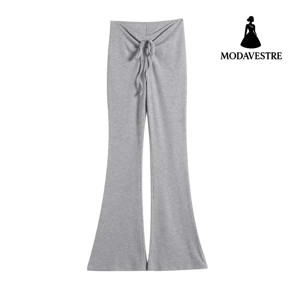 Women’s slim fit pleated lace up casual pants Light Gray / S